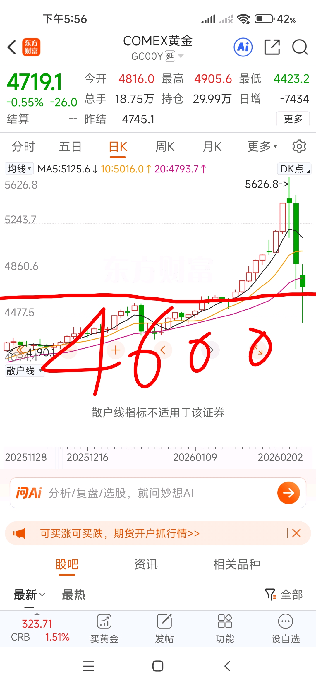 $COMEX黄金(COMEX|GC00Y)$ $秋林3(SZ400101)$ $S佳通(SH600182)$ 探底成功,4600平台支撑有效