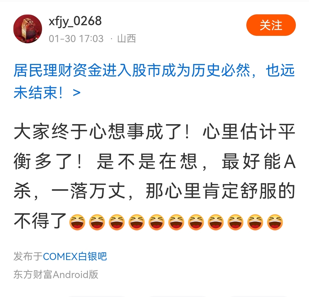 温馨提示: 1.根据《证券法》规定,禁止编造、传播虚假信息或者误导性信息,扰乱证券市场;2.用户在本社区发表的所有资料、言论等仅代表个人观点,与本网站立场无关,不对您构成任何投资建议。用户应基于自己的独立判断,自行决定证券投资并承担相应风险。《东方财富社区管理规定》