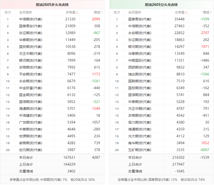燃油龙虎榜 | 主力合约增仓上行 多空双方均呈进场态势