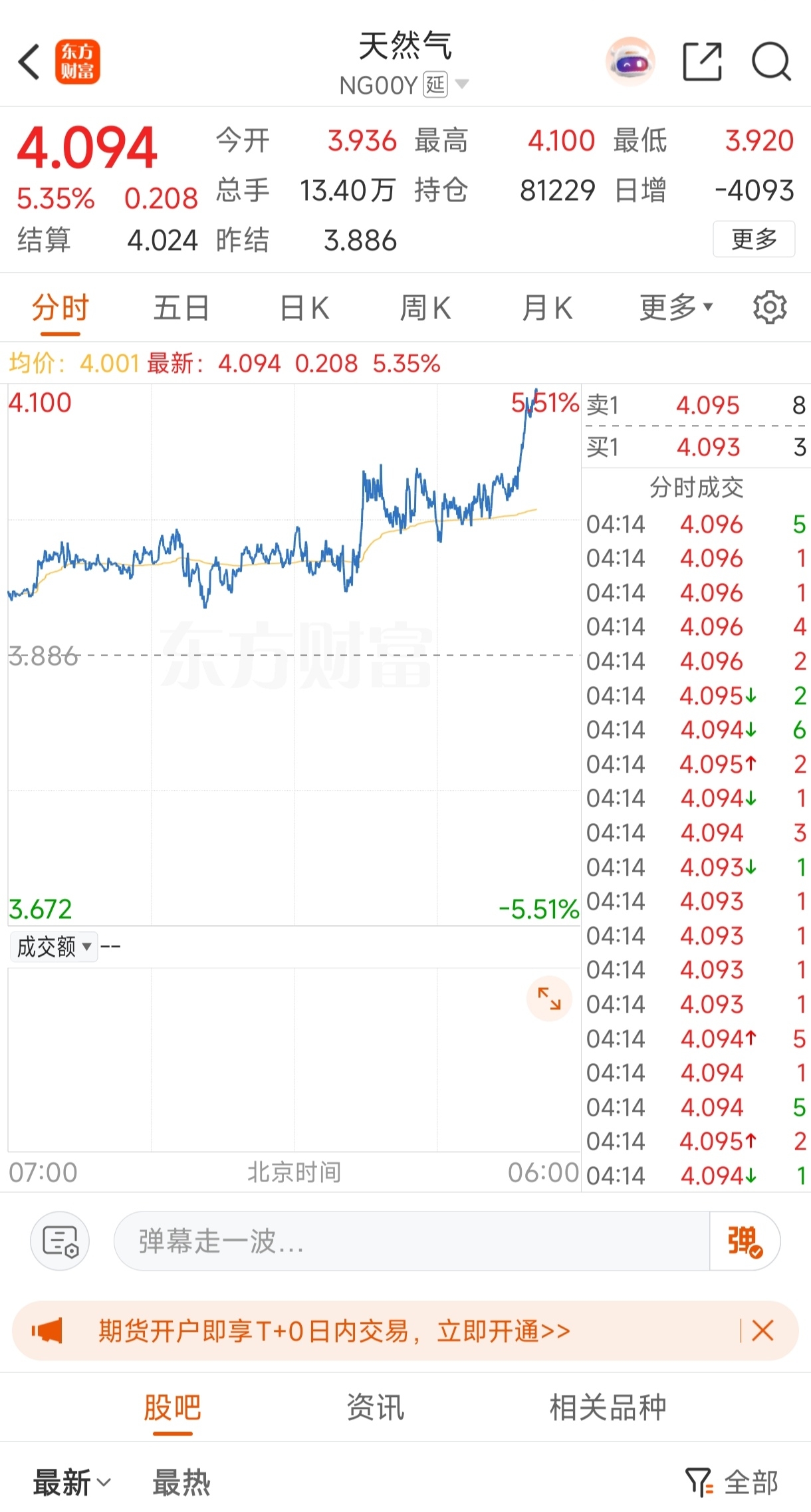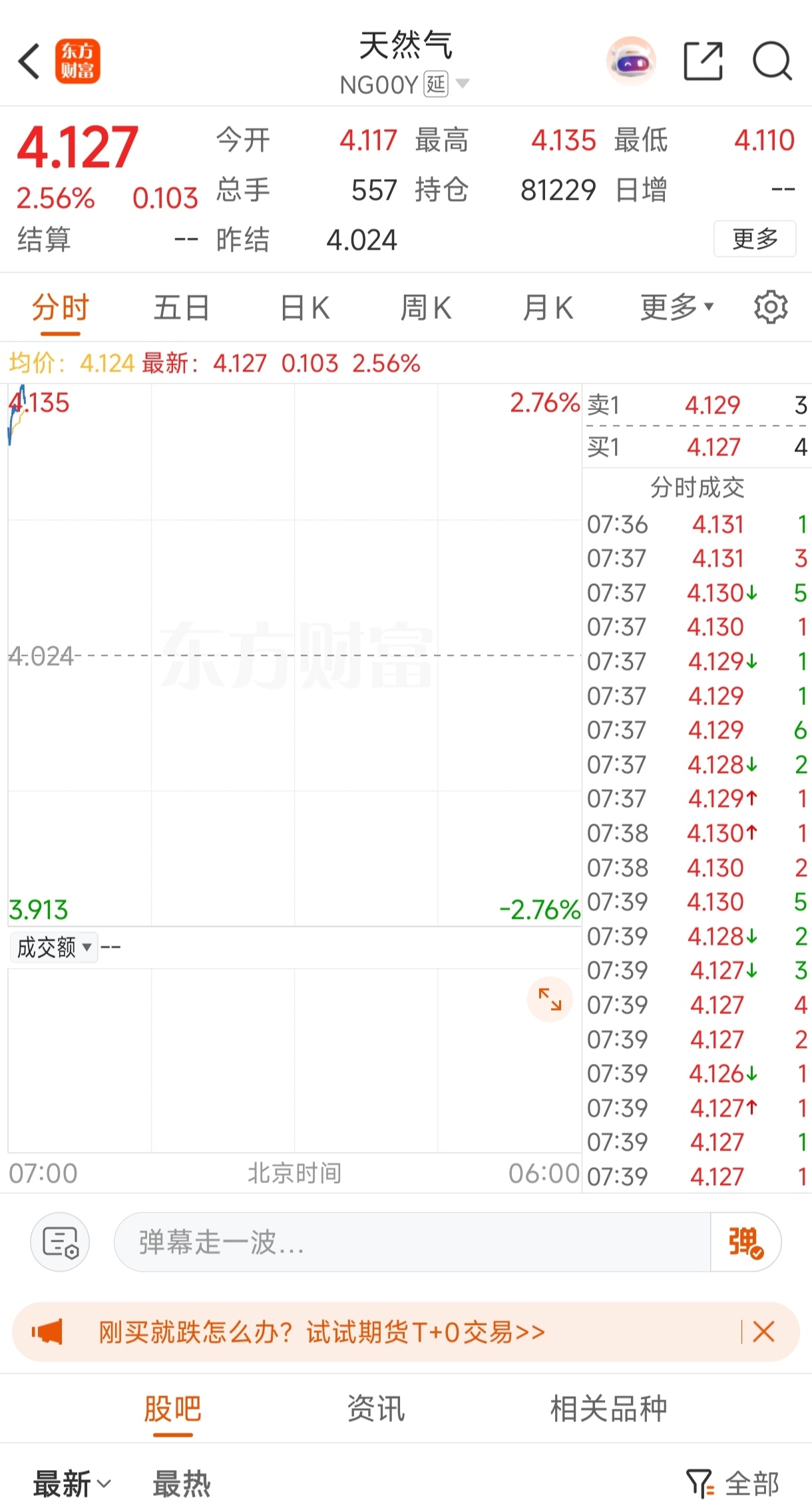 $天然气(NYMEX|NG00Y)$ 今天的暴涨,希望明天挽救长春涨下$长春燃气(SH600333)$ @妙想