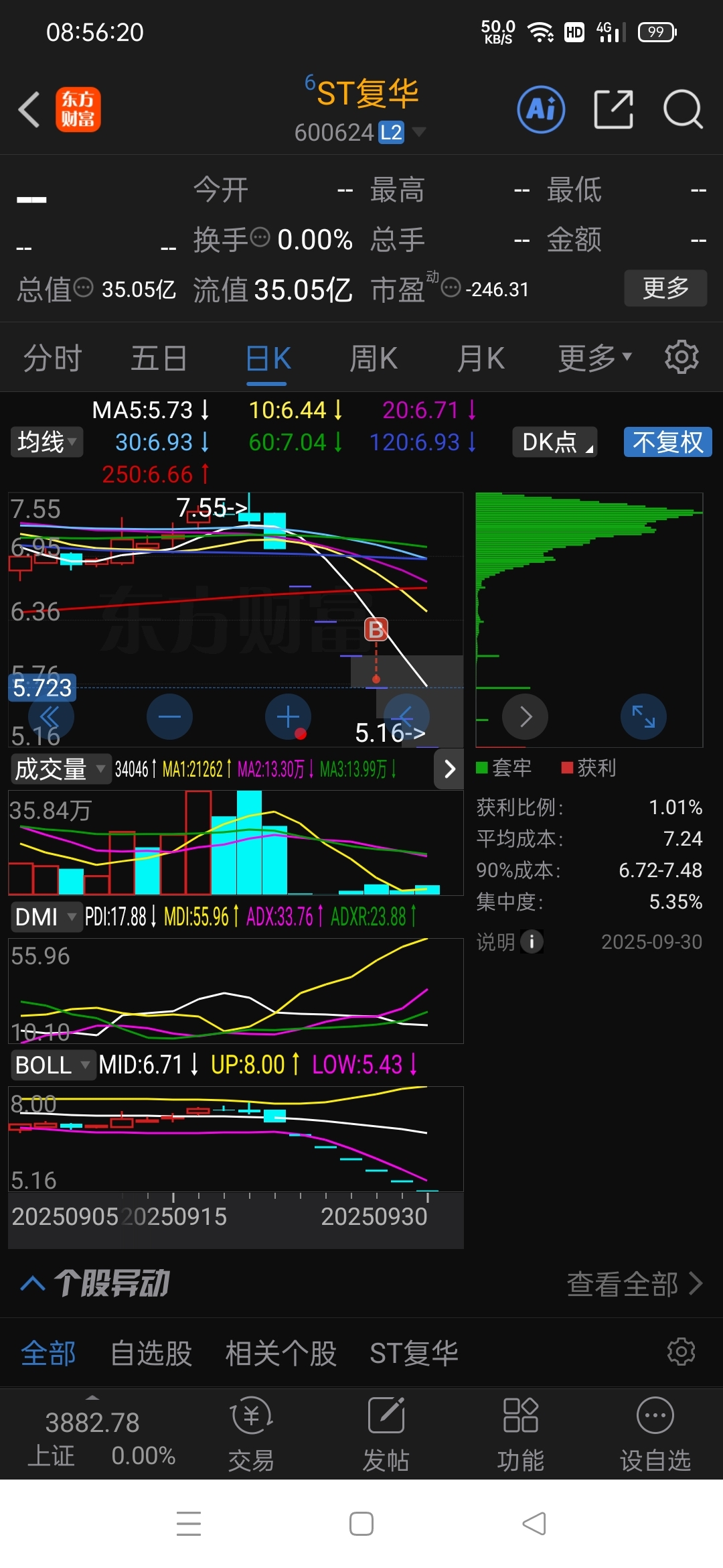 $A50期指当月连续(SGX|CN00Y)$ $ST复华(SH600624)$ $海南华铁(SH603300)$ 不管今天开不开,考虑加仓复华,有支持的吗?