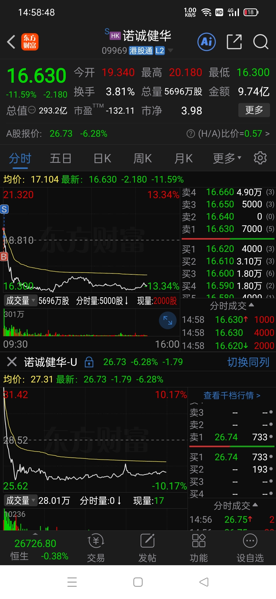 $A50期指当月连续(SGX|CN00Y)$ $诺诚健华-U(SH688428)$ $诺诚健华(HK|09969)$ 开门第一天选了这个货,还好割的坚决,不然损失更大。