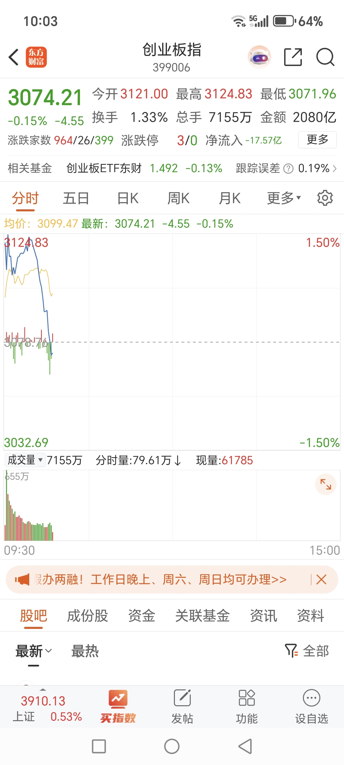 $A50期指当月连续(SGX|CN00Y)$ $上证指数(SH000001)$ $宁德时代(SZ300750)$ 创业板指竟然绿了,这么魔幻嘛?