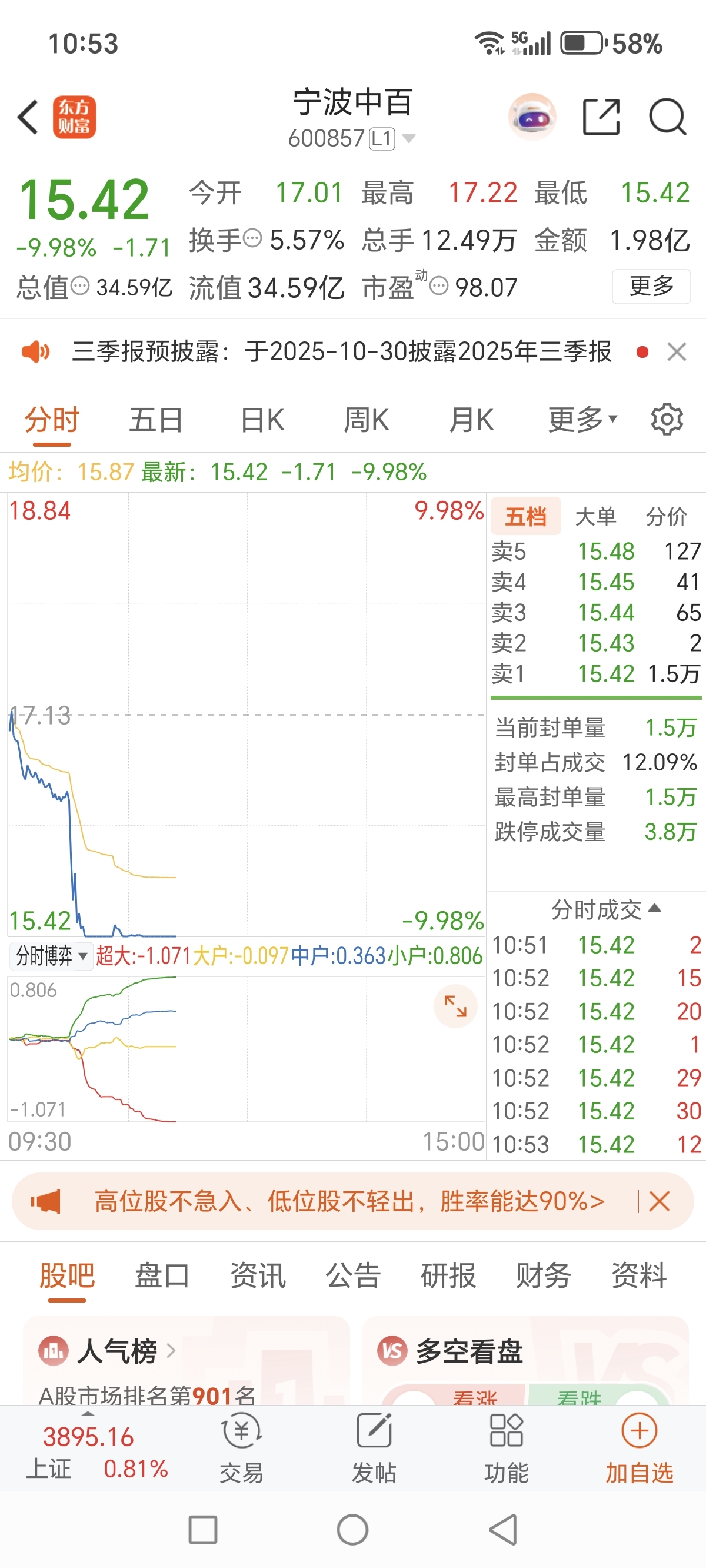 $A50期指当月连续(SGX|CN00Y)$ $上证指数(SH000001)$ $宁波中百(SH600857)$ 我朋友刚刚抄底了,我想拦没能拦住他