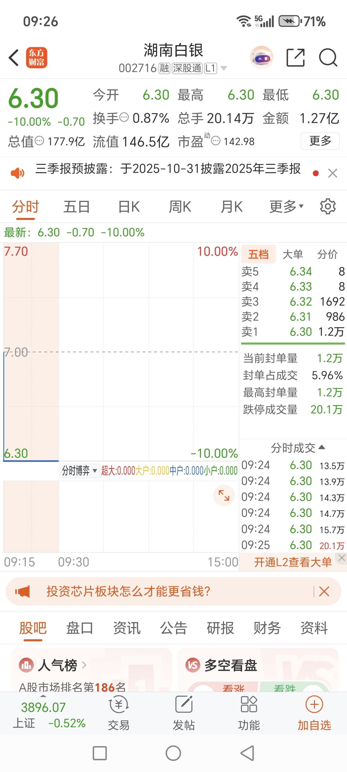 $A50期指当月连续(SGX|CN00Y)$ $上证指数(SH000001)$ $湖南白银(SZ002716)$ 我朋友急问:能抄底嘛?