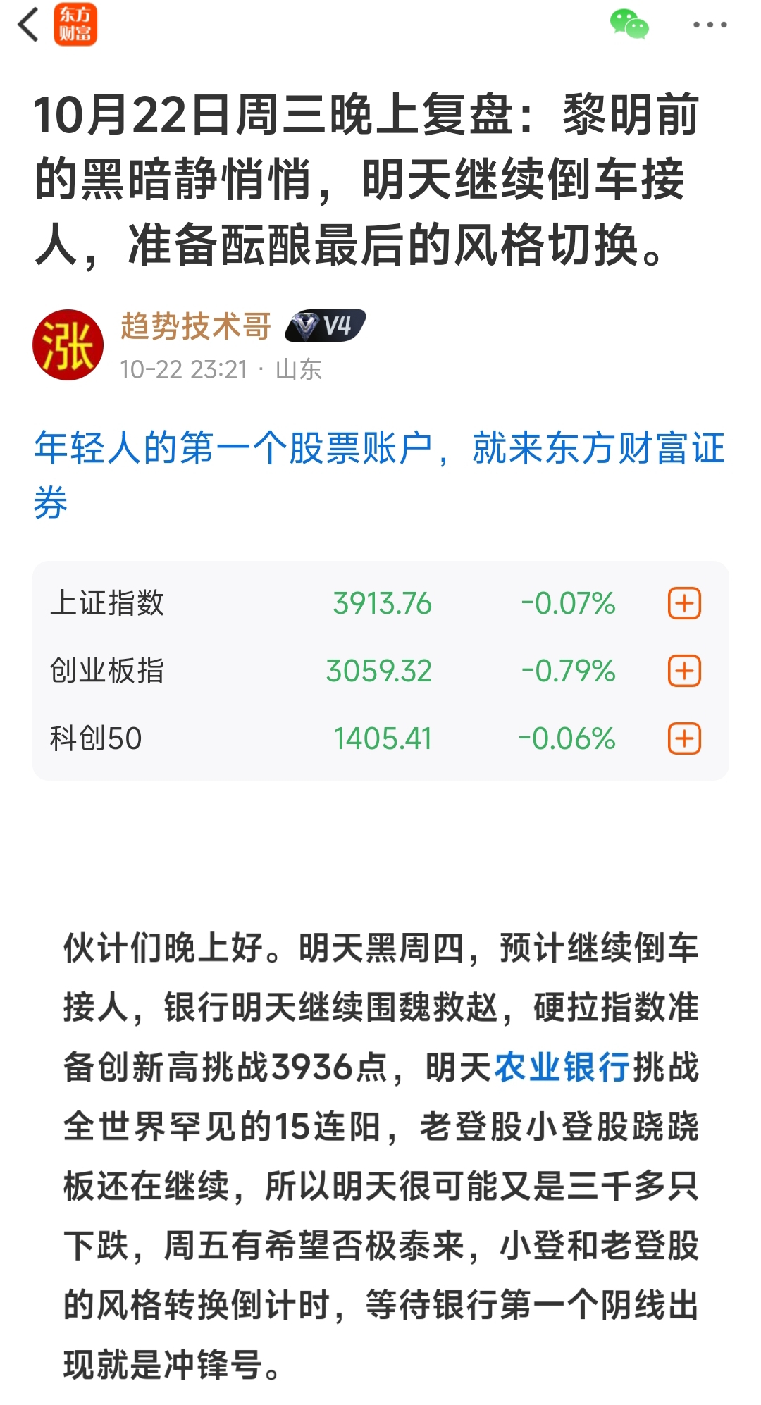 10月22日周三晚上复盘:黎明前的黑暗静悄悄。