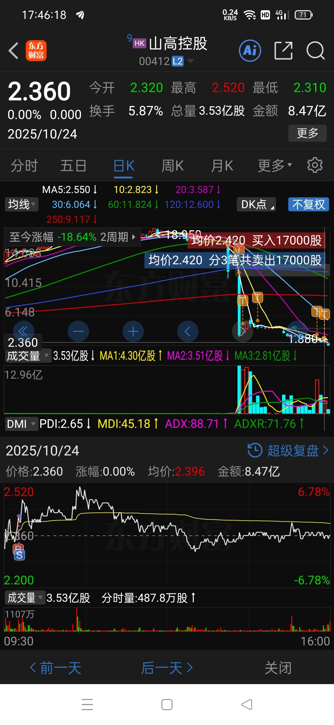 $A50期指当月连续(SGX|CN00Y)$ $山高控股(HK|00412)$ 上周五尾盘忍住没买不完全是运气,我看了下近期退通的当日基本大跌,关键是挺久了,现在大多还没涨回去,因此放弃了购买。我知道坚守的都不是搏短线的,祝你们守得云开见月明。