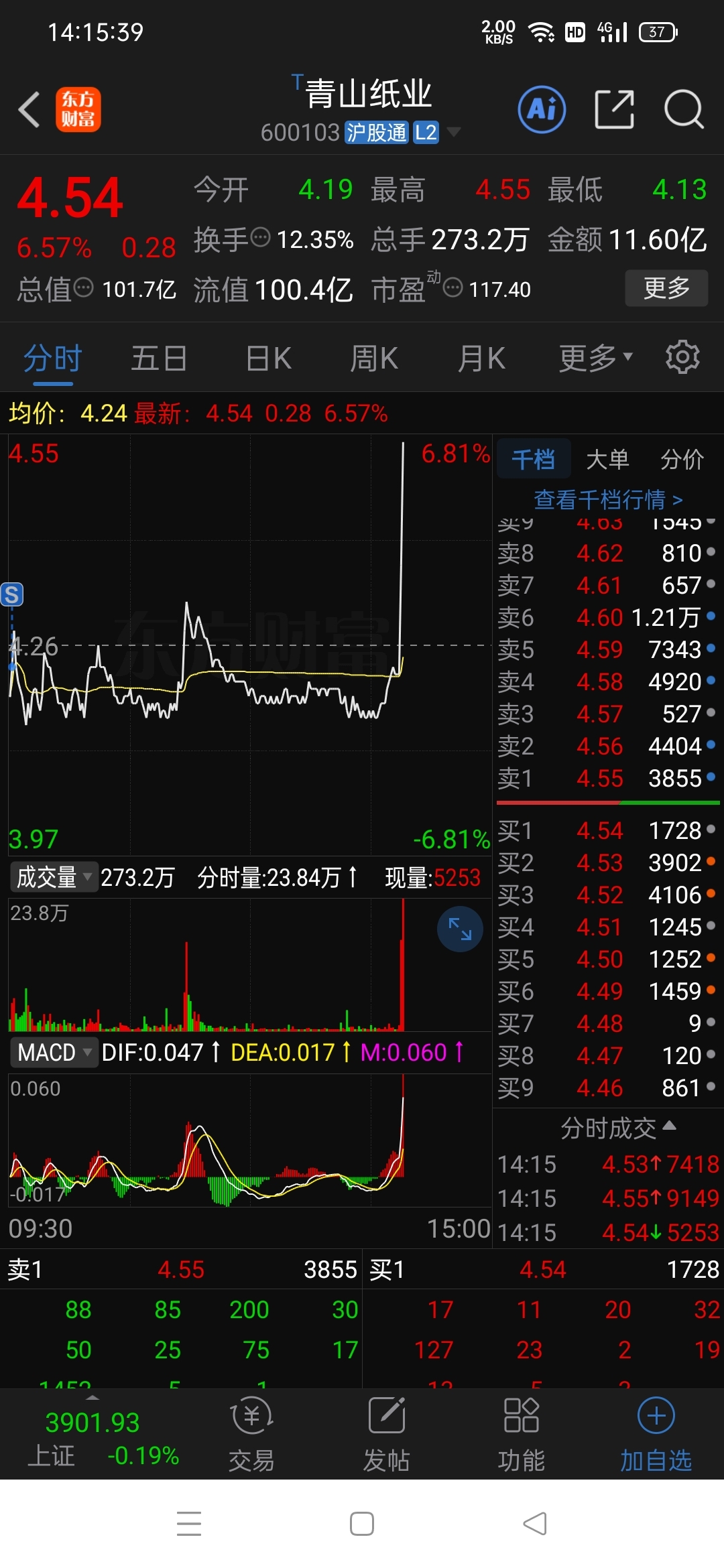 $A50期指当月连续(SGX|CN00Y)$ $青山纸业(SH600103)$ $闻泰科技(SH600745)$ 中午刚晒完东岳和闻泰卖的不错,现在就来打脸,是看到午间的帖子了?