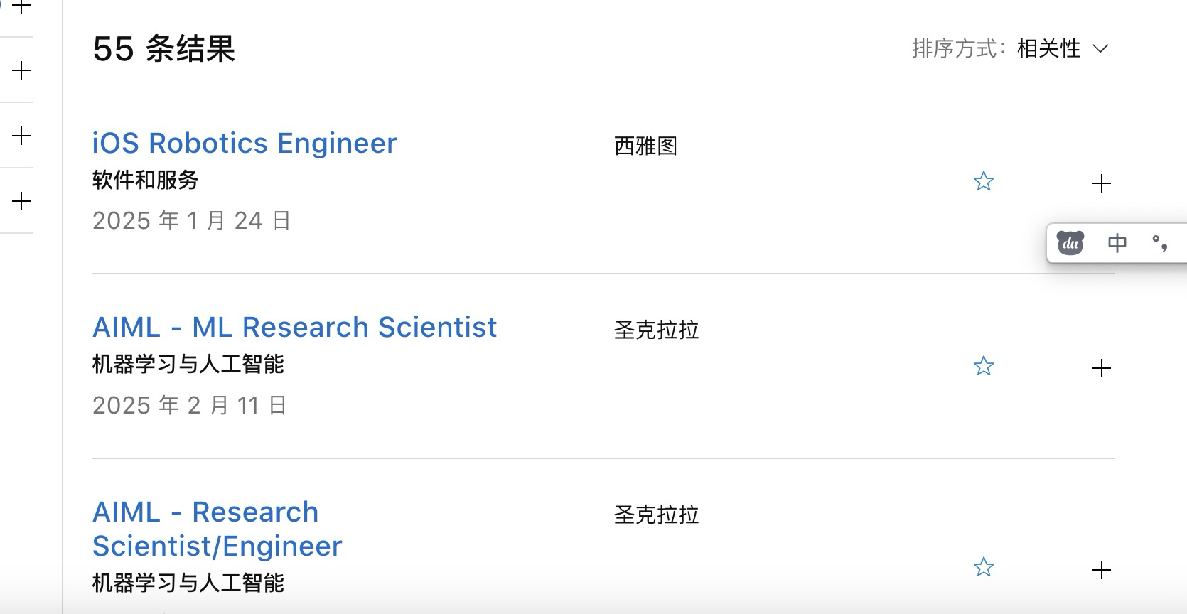 第一财经记者注意到,在苹果招聘官网中,搜索Robot关键词,共有55条结果,包括iOS机器人工程师等职位。岗位从去年下半年陆续公布,最新一个岗位于今日公布,为模拟和控制系统工程师。