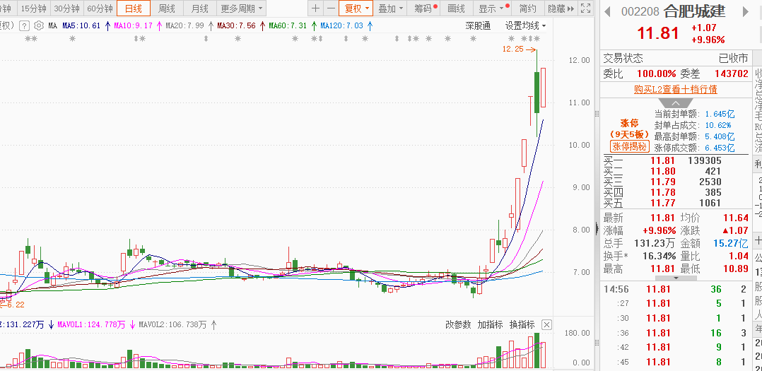 合肥城建:光伏,该股目前9天5板,上涨趋势,断板后周四反包涨停,封单1.6个多亿,均线贴合股价,上涨趋势又继续爆发可能,可以逢低看看机会。