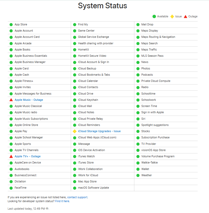 10月20日,苹果公司在其系统状态页面上表示,正在调查导致部分用户无法访问Apple TV+和Apple Music的服务问题。
