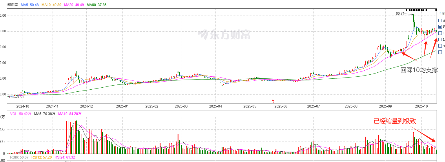 和而泰002402:参G摩尔线程;缩量调整已经完成,这里也是屡次回踩20均支撑成立,短期缺一个放量阳线来打破盘整趋势,之后就是一马平川了。