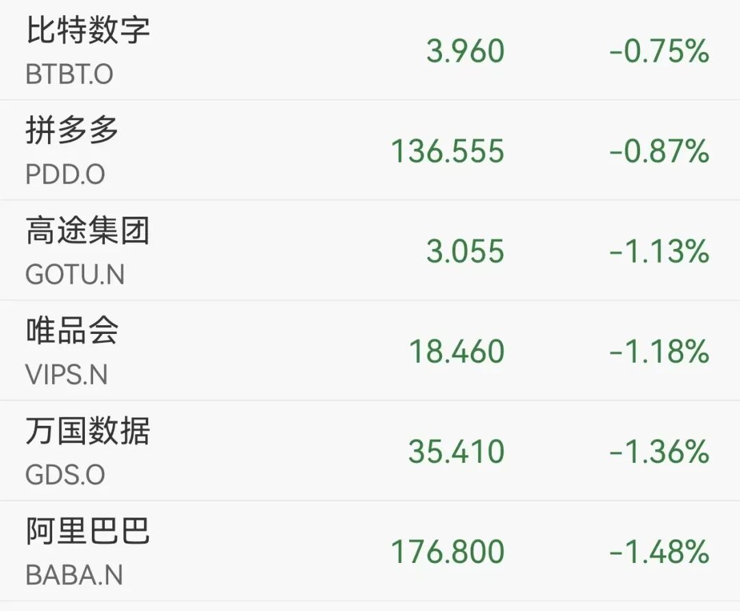多只热门中概股下跌,纳斯达克金龙跌约1.7%,乐信、健永生技、嘉楠科技、奇富科技跌超15%,阿里、拼多多、京东、百度等均跌超1%。