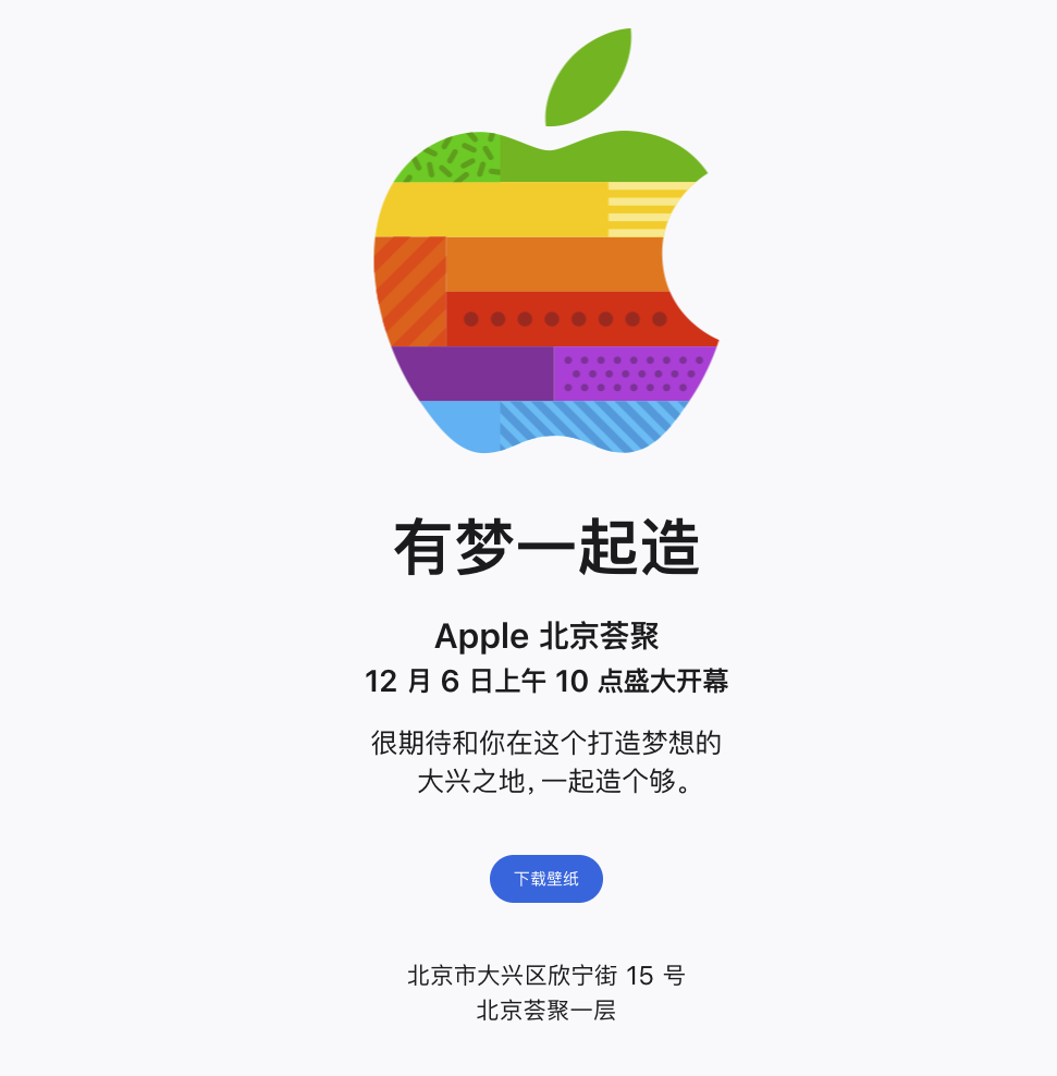 苹果北京大兴零售店将于12月6日开业