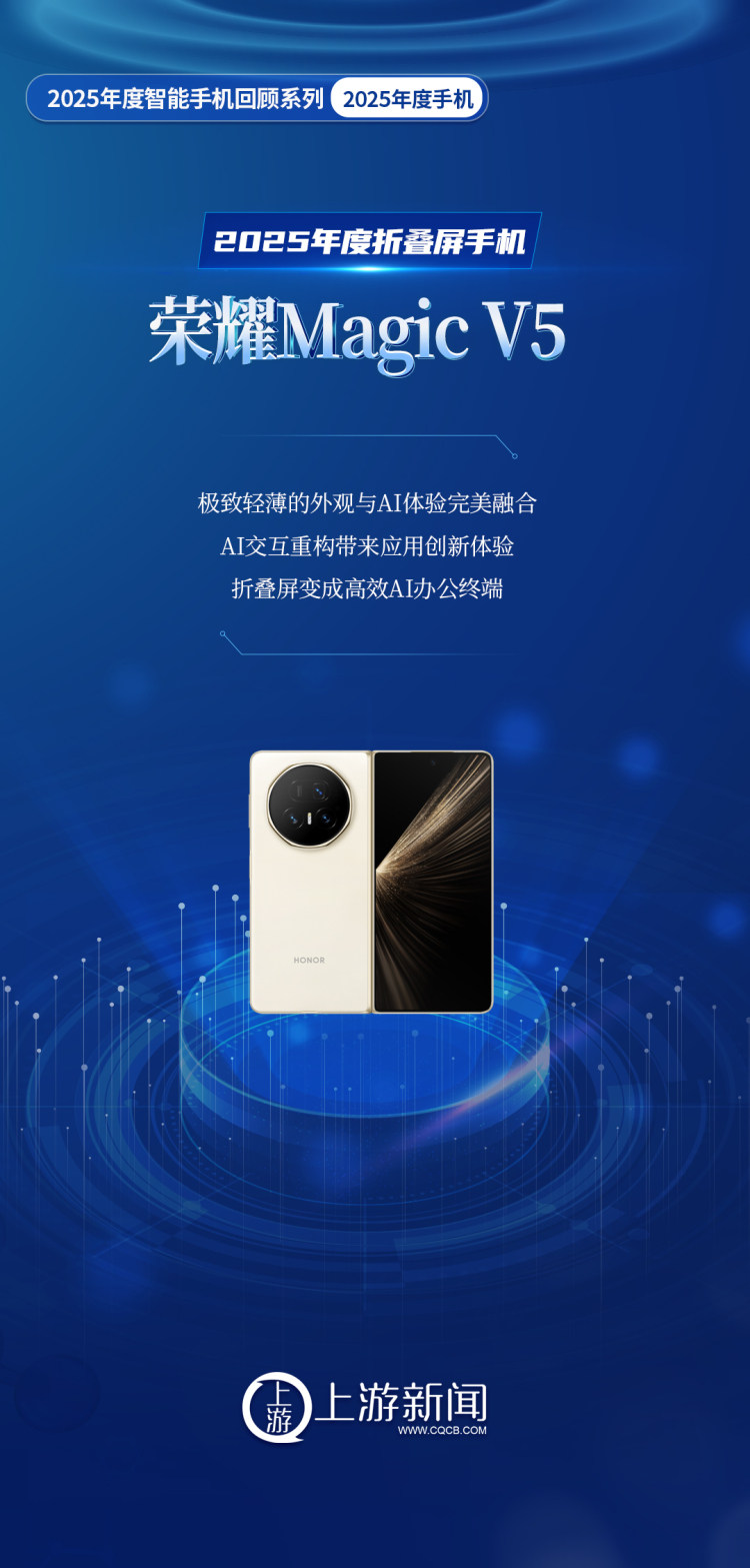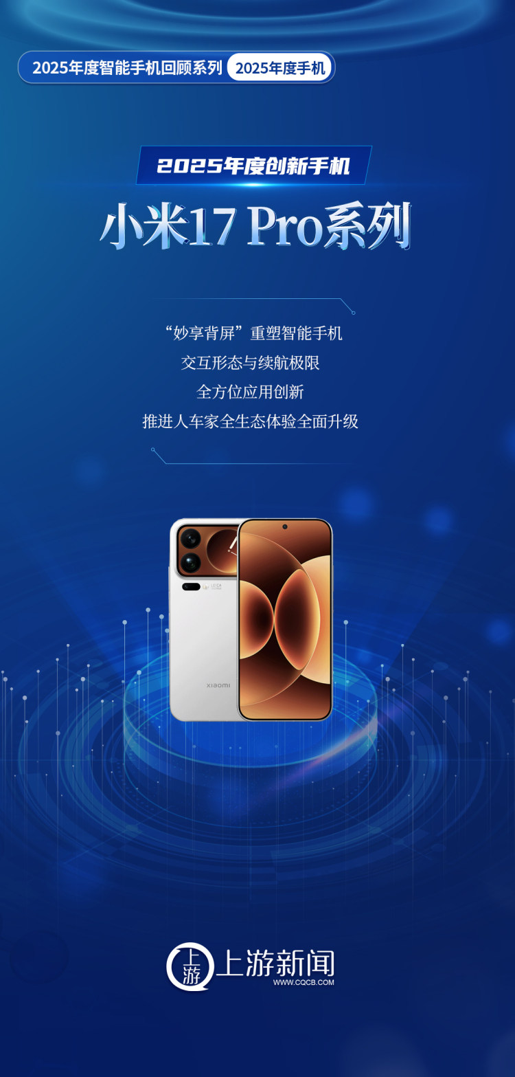 2025年最后一天,上游新闻“2025年度智能手机回顾”系列正式出炉:“年度AI手机”华为Mate 80系列、“年度影像旗舰手机”vivo X300系列、“年度设计手机”iPhone Air、“年度折叠屏手机”荣耀Magic V5、“年度性能手机”iQOO 15系列、“年度创新手机”小米17 Pro系列。