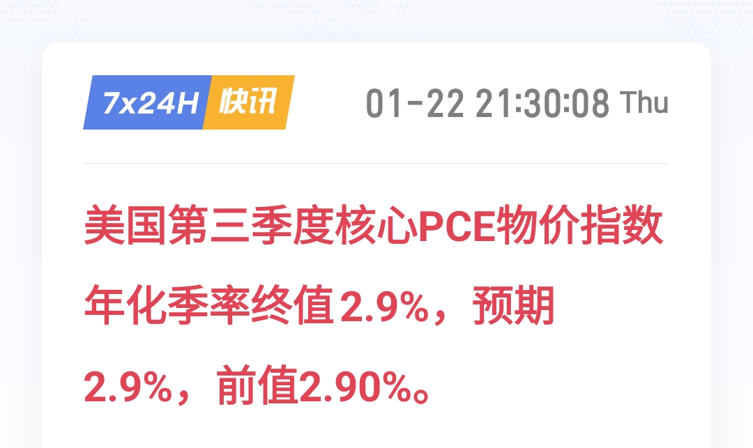 美国第三季度核心PCE物价指数年化季率符合预期。