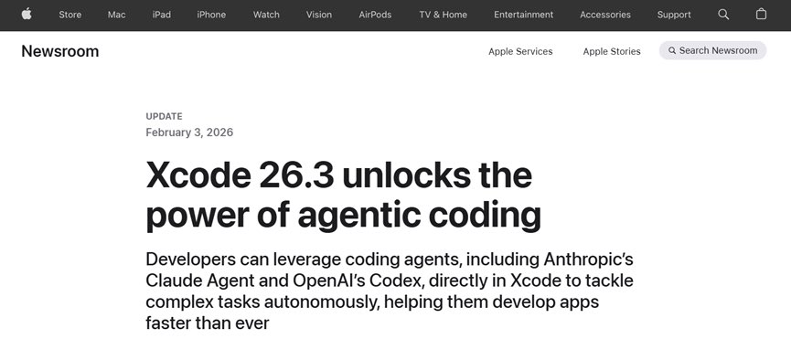 周三凌晨,苹果在官网宣布了一个重要消息,旗舰编程平台Xcode 26.3正式支持Anthropic