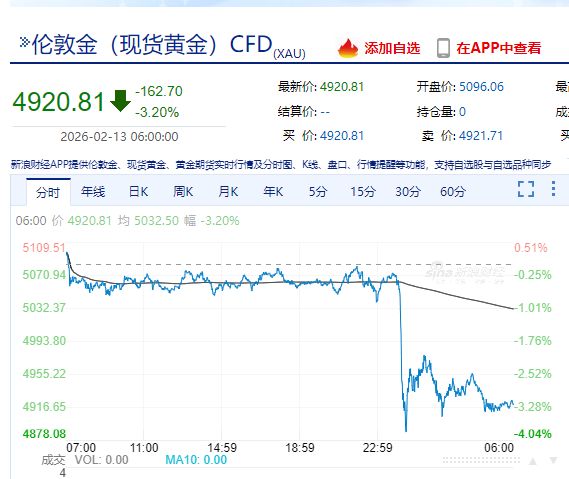 COMEX黄金期货收跌3.08%,报4941.4美元/盎司;COMEX白银期货收跌10.62%,报75.01美元/盎司。