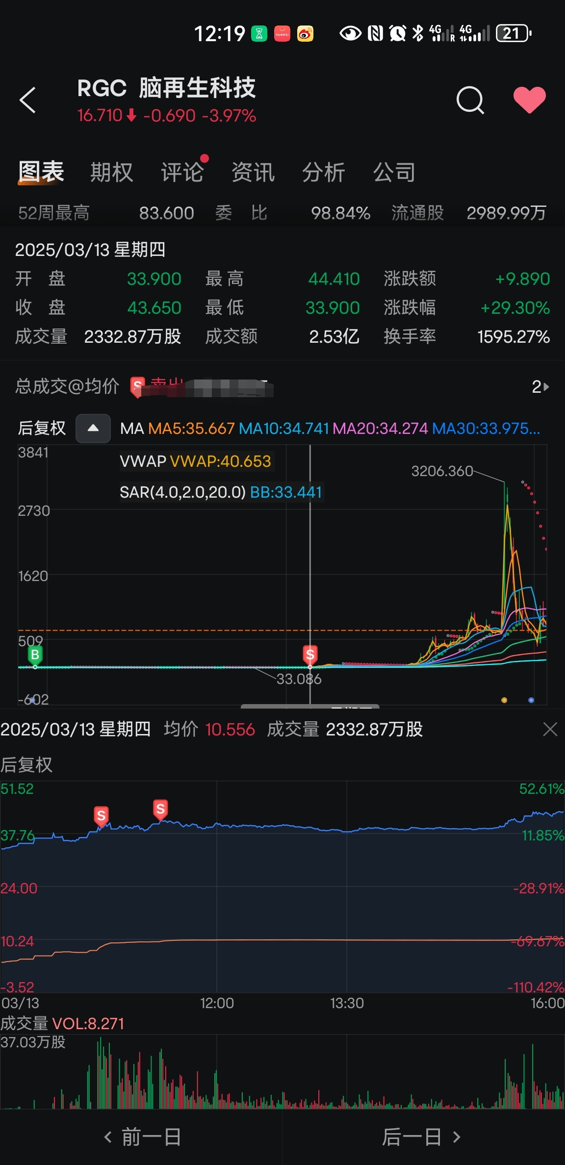 脑再生涨了两倍就卖了,两个月错过了一千倍,向上食品绝对不会收手,宁可亏本不到70美刀不卖。