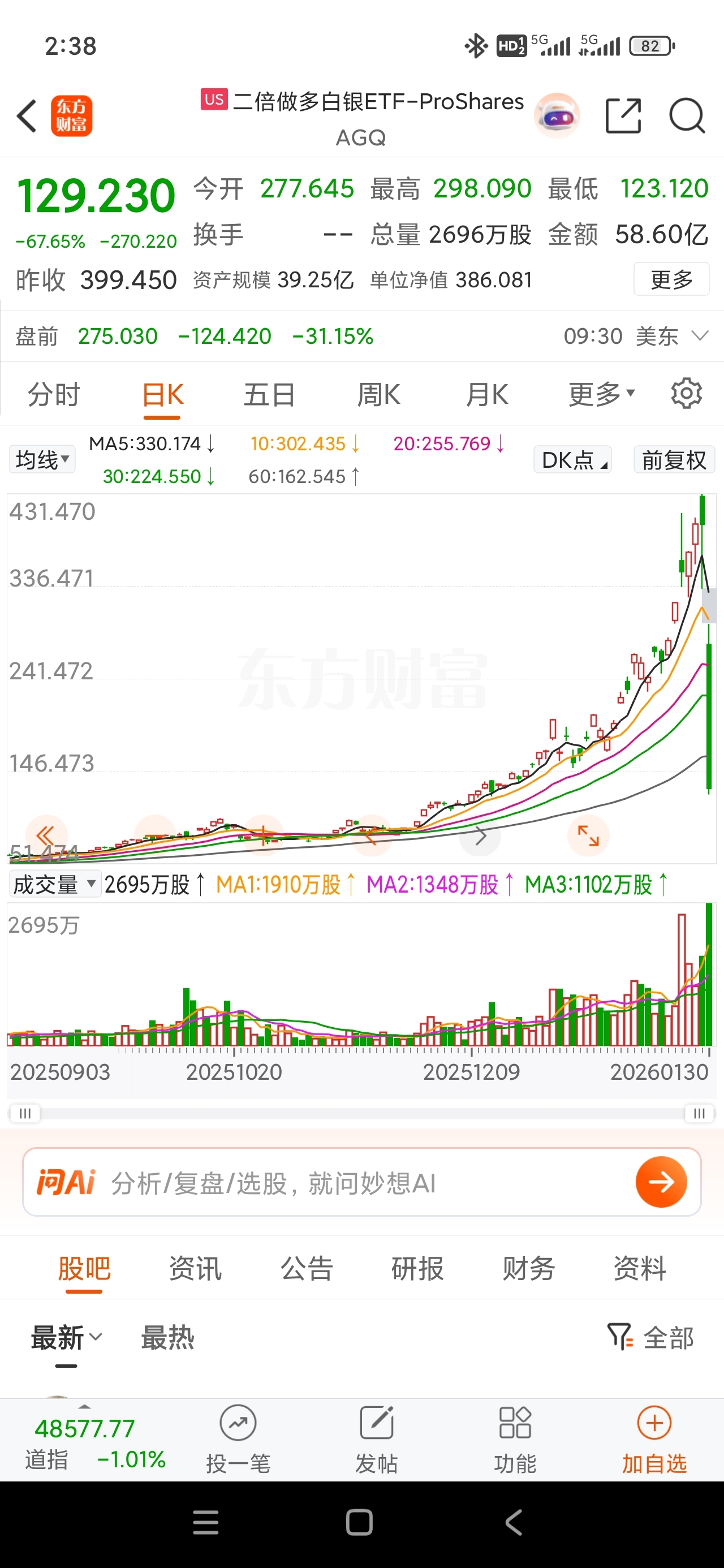 $二倍做多白银ETF-ProShares(AMEX|AGQ)$ 一个月不够两天跌