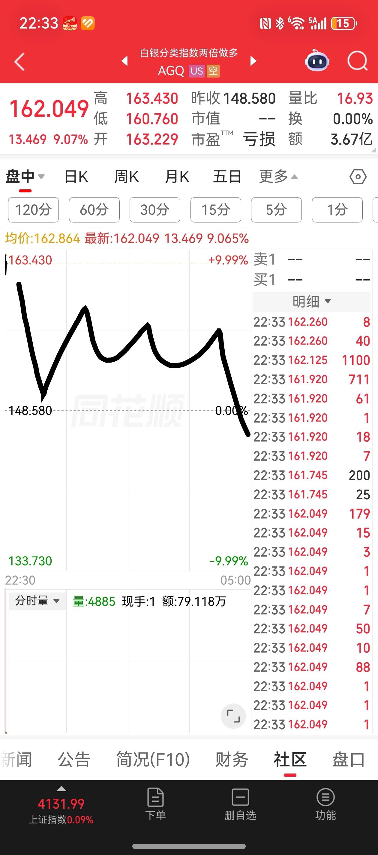 $二倍做多白银ETF-ProShares(AMEX|AGQ)$ 管住手,会跌到145-150