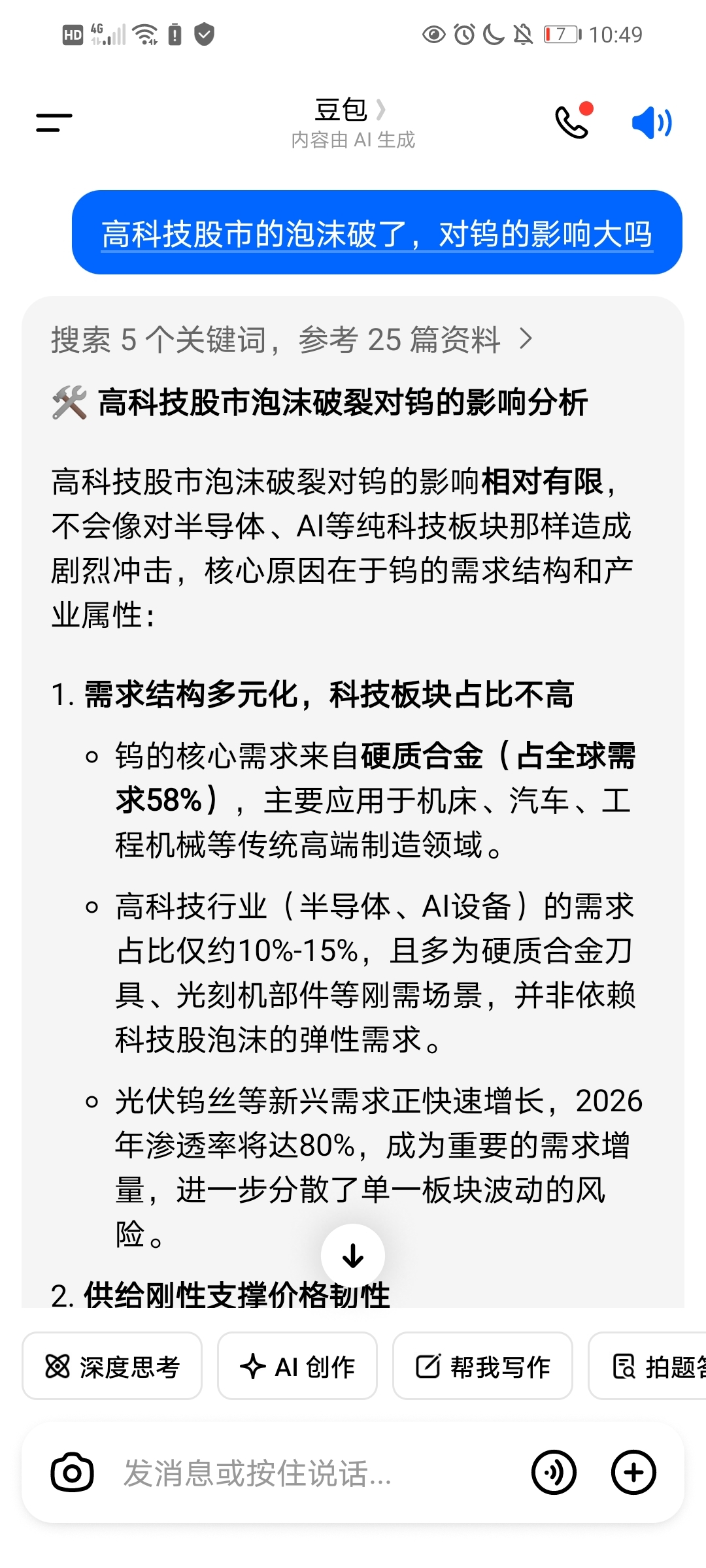 钨在美股高科技股市泡沫时代,就算贵金属泡沫,影响有限,钨的作用是传统制造业,你总