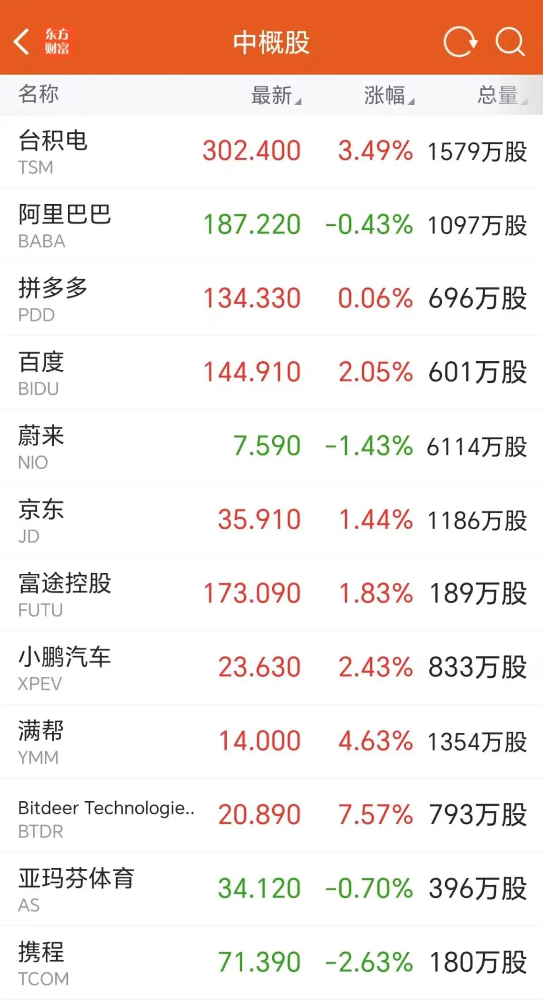 纳斯达克中国金龙指数收涨1%,热门中概股多数上涨,小牛电动涨超23%,小鹏汽车、百度涨超2%,知乎、京东、名创优品涨超1%,蔚来跌超1%。