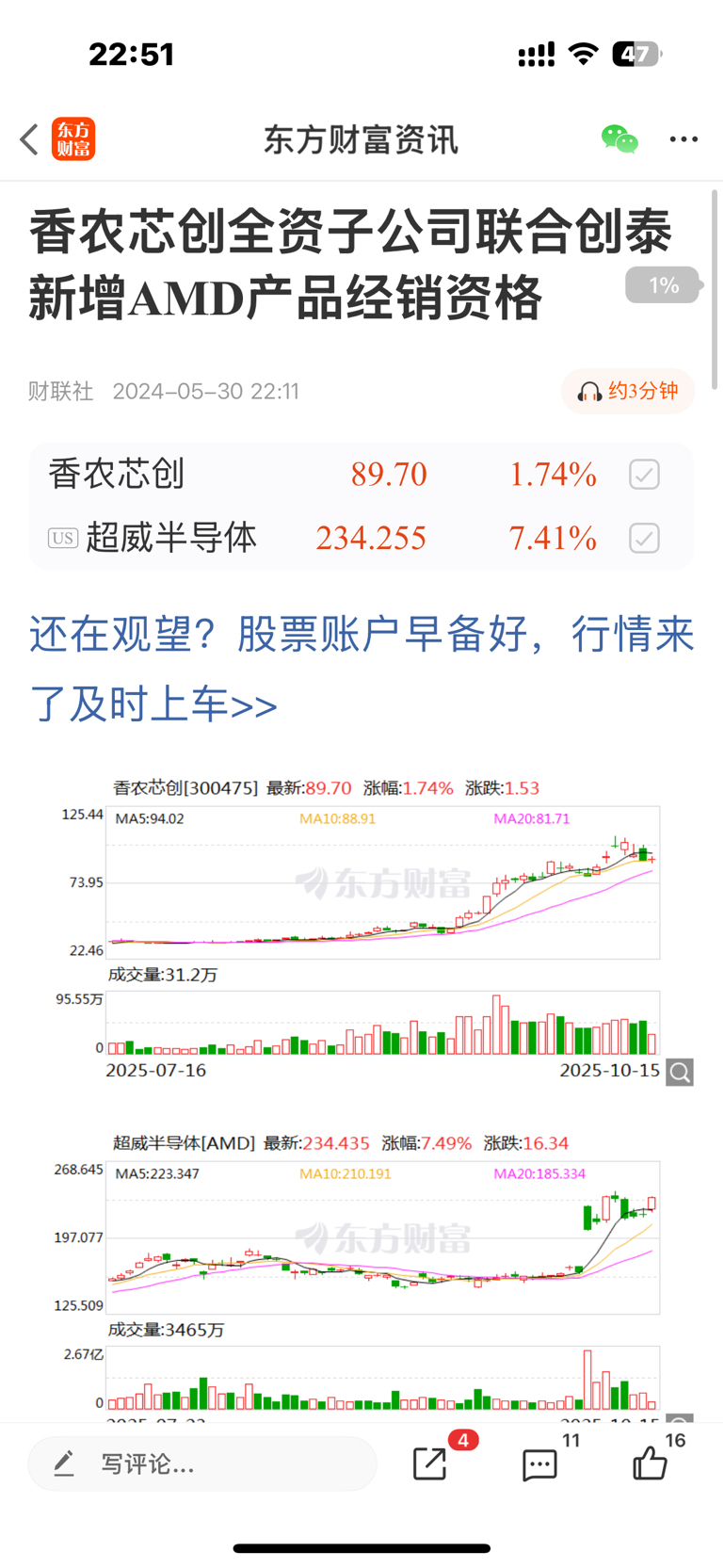 通富、香浓一起涨停、好吧,不要喷,我相信公告,香浓24年5月30日与AMD签署代