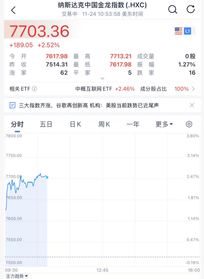 11月24日晚间,美股三大指数上涨,道琼斯指数涨超200点,科技股为主的纳斯达克指数暴涨约2%,标普500指数涨超1%。
