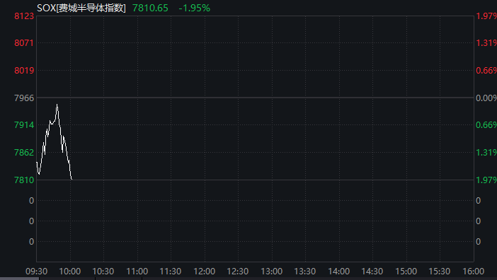 受到AMD暴跌影响,美股芯片股多数走低,截至发稿,费城半导体指数跌幅逼近2%。