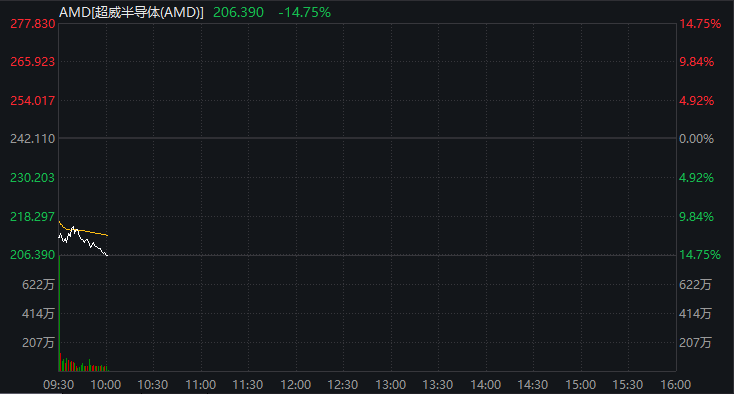 当地时间2月4日,美股芯片巨头AMD开盘大幅走低,截至发稿,跌超14%。