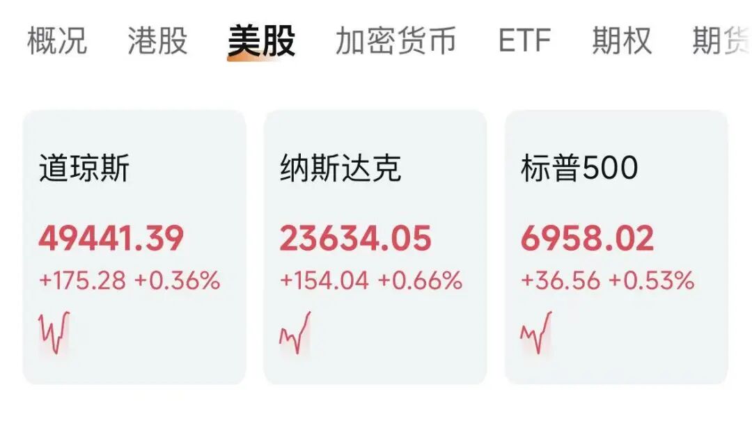 当地时间1月9日,美股三大指数集体高开。截至发稿,道琼斯指数涨0.36%,纳斯达克综合指数涨0.66%,标普500指数涨0.53%。