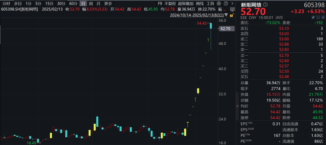 2月13日早盘,阿里巴巴港股涨超3%。阿里概念股连续两日上扬,2月13日阿里巴巴概念股再度爆发,盘中,新炬网络实现11连板,杭钢股份7连板,润建股份4连板,数据港、浙大网新7天4板。