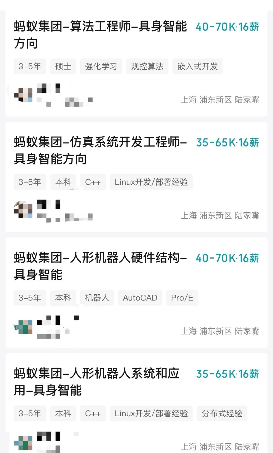 近日,蚂蚁集团在招聘平台开放了多个具身智能方向的岗位,具体包括算法工程师、人形机器人硬件结构、仿真系统开发工程师、人形机器人运动控制等。另有业内人士向上证报记者透露,蚂蚁集团在2024年便已在推进具身智能相关业务。