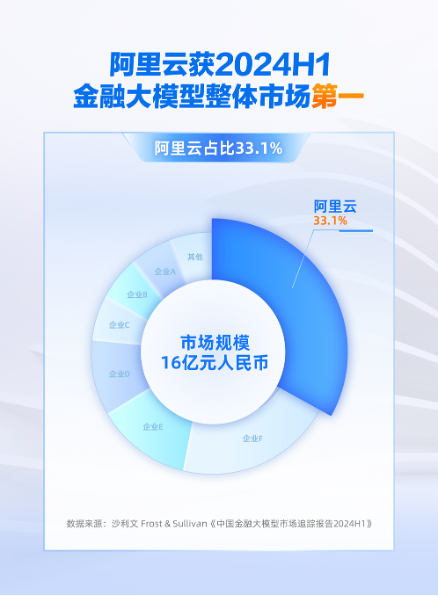 2月27日,国际权威分析机构沙利文发布的《中国金融大模型市场追踪报告,2024H1》显示,阿里云以33%的市场份额夺得中国金融大模型整体市场第一。