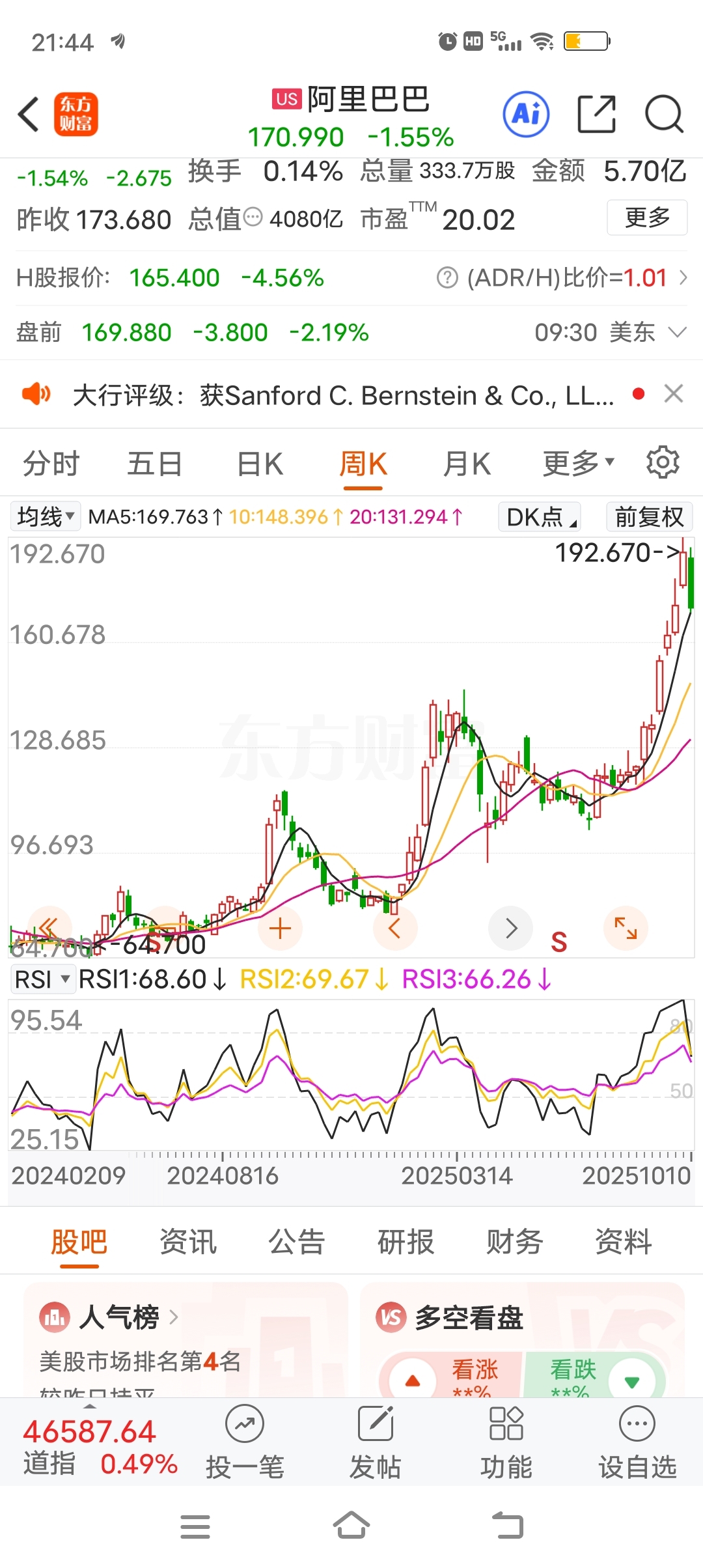 $阿里巴巴(NYSE|BABA)$ 要跌得前面的顶