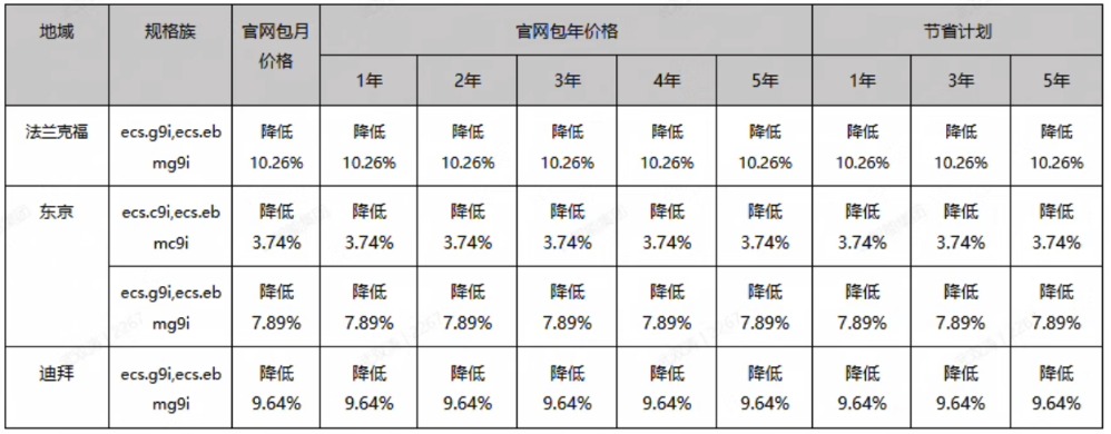 10月13日,阿里云发布公告,将于北京时间2025年10月30日12时起,调整部分云服务器ECS产品价格。本次价格调整涉及的地域包括法兰克福、东京、迪拜,调整的规格族包括ecs.c9i、ecs.g9i、ecs.r9i、ecs.ebmc9i、ecs.ebmg9i、ecs.ebmr9i,价格降幅含包月价、包年价及节省计划价格。本次价格调整仅适用于上述包月价、包年价格及节省计划在生效日后所发起的符合条件订单,包括新购、续费、升降配等。