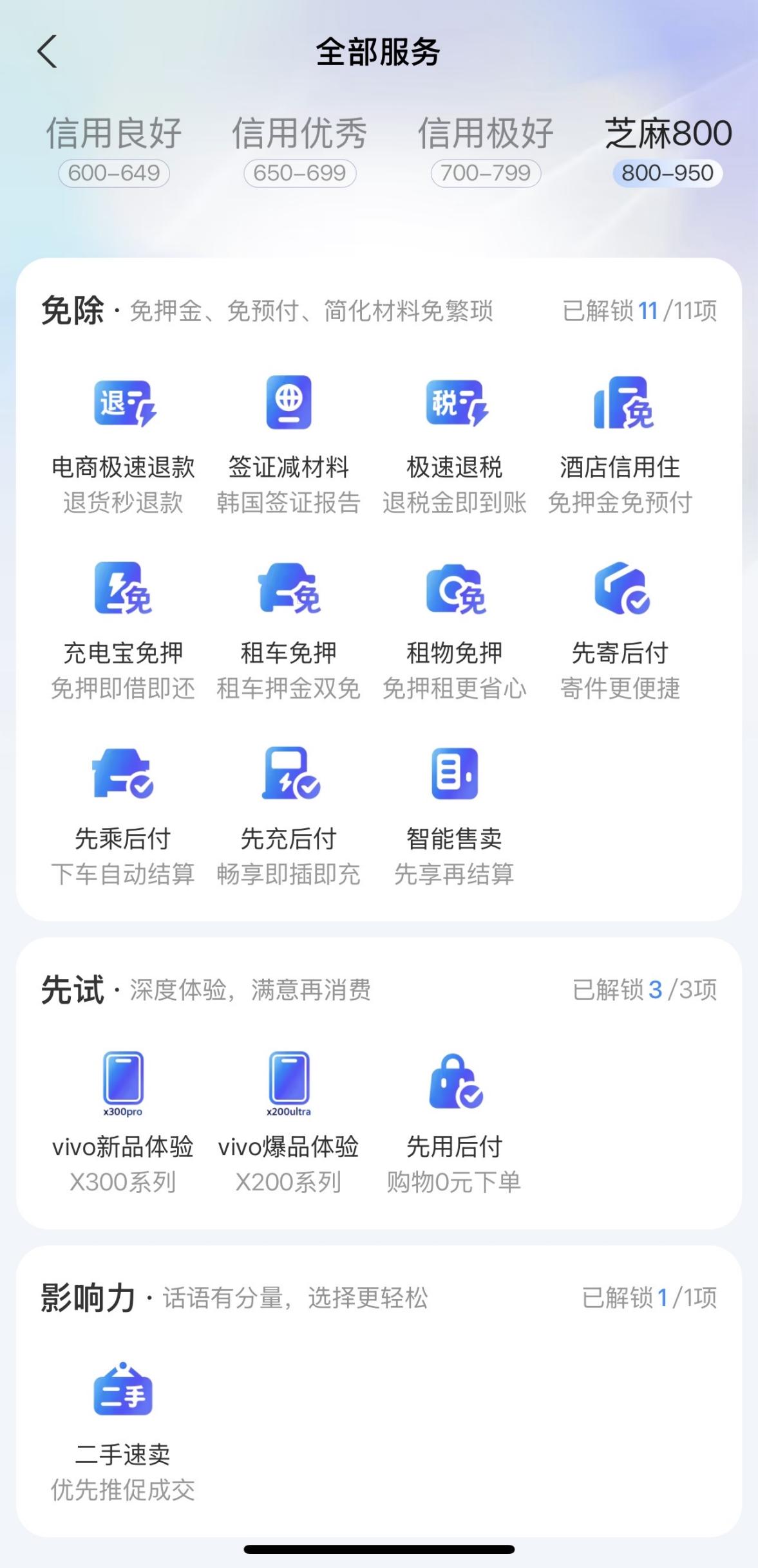 景福表示,希望更多品牌、商家和芝麻一起参与共建。据悉,芝麻信用与高德地图合作升级,高德地图将上线“芝麻800”信用标识,高分用户发布守约内容可获得流量倾斜,并基于信用评价获得更多本地生活权益;此外,“芝麻800”与vivo的合作,聚焦探索信用在智能终端设备租赁、先用后付等场景中的创新应用,如在vivo X300系列新品上的深度体验。