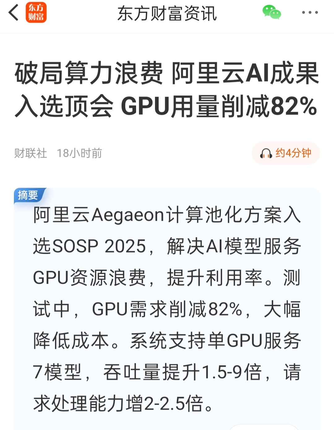 重大利好!!!阿里云AI成果入选顶会GPU用量削减82%下周有望创新高,冲击20