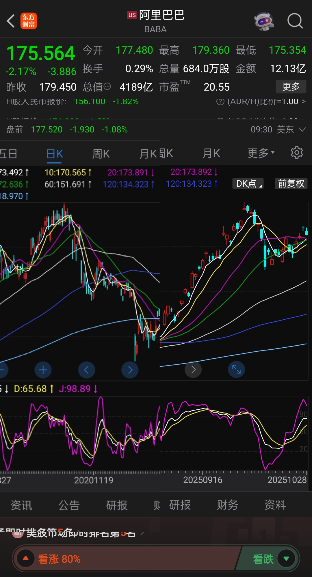 $阿里巴巴(NYSE|BABA)$ 像不2020年11月的位置,这次大顶是形成了,这个小B反给了所有人逃跑的机会。