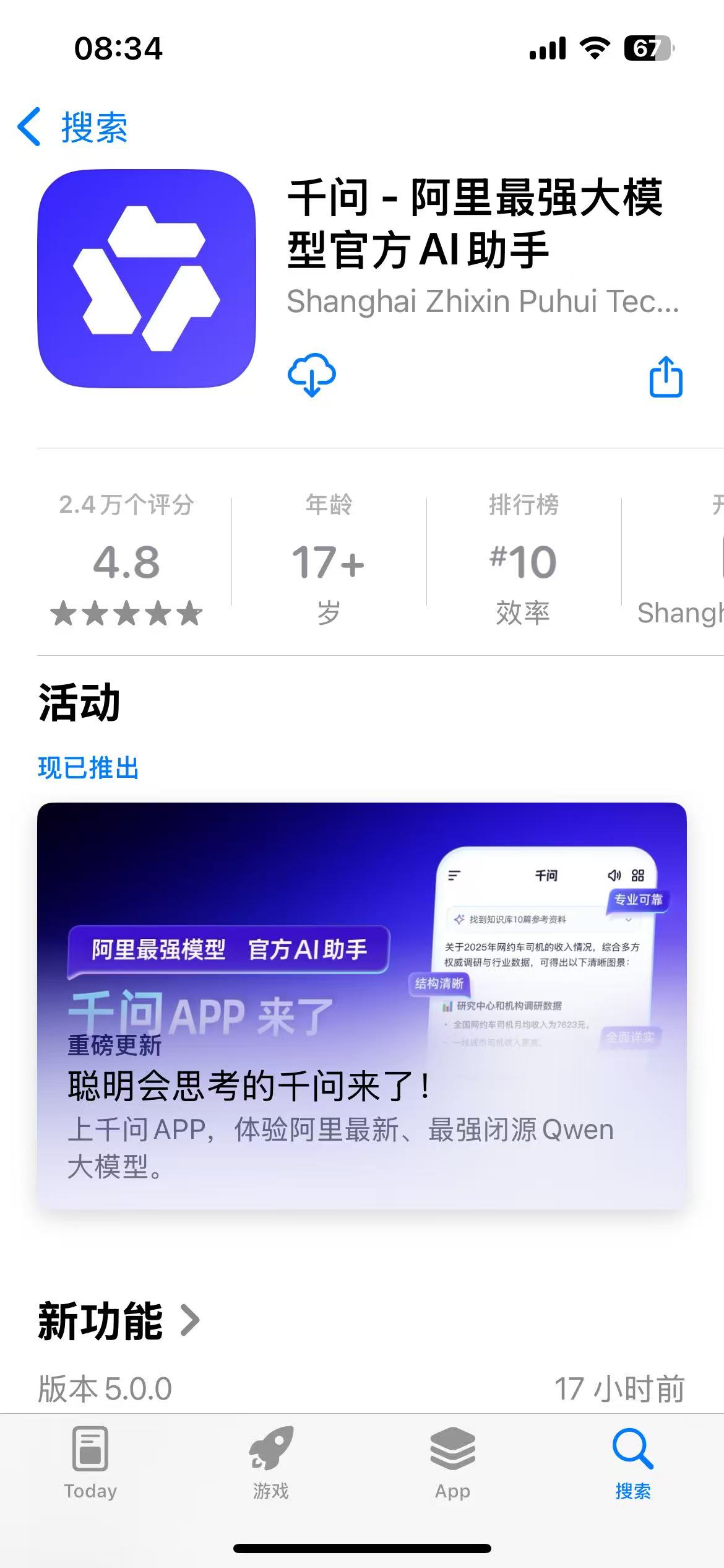 每经AI快讯,11月15日,从应用商店注意到,阿里旗下通义App名称已变更为千问App,版本号由3.59.1升级为5.0.0。
