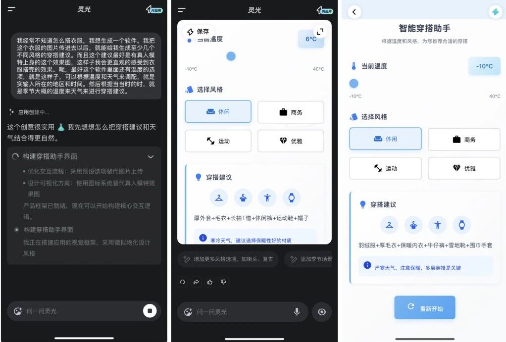 从实际体验方面来看,灵光实现了AI助手从“交付信息”到“交付价值”的升级。以备受用户欢迎的“闪应用”功能为例,用户只需要说出想法,就能在30秒内获得一个可交互、可编辑、可执行的小应用,从而将想法直接转化为解决问题的工具。