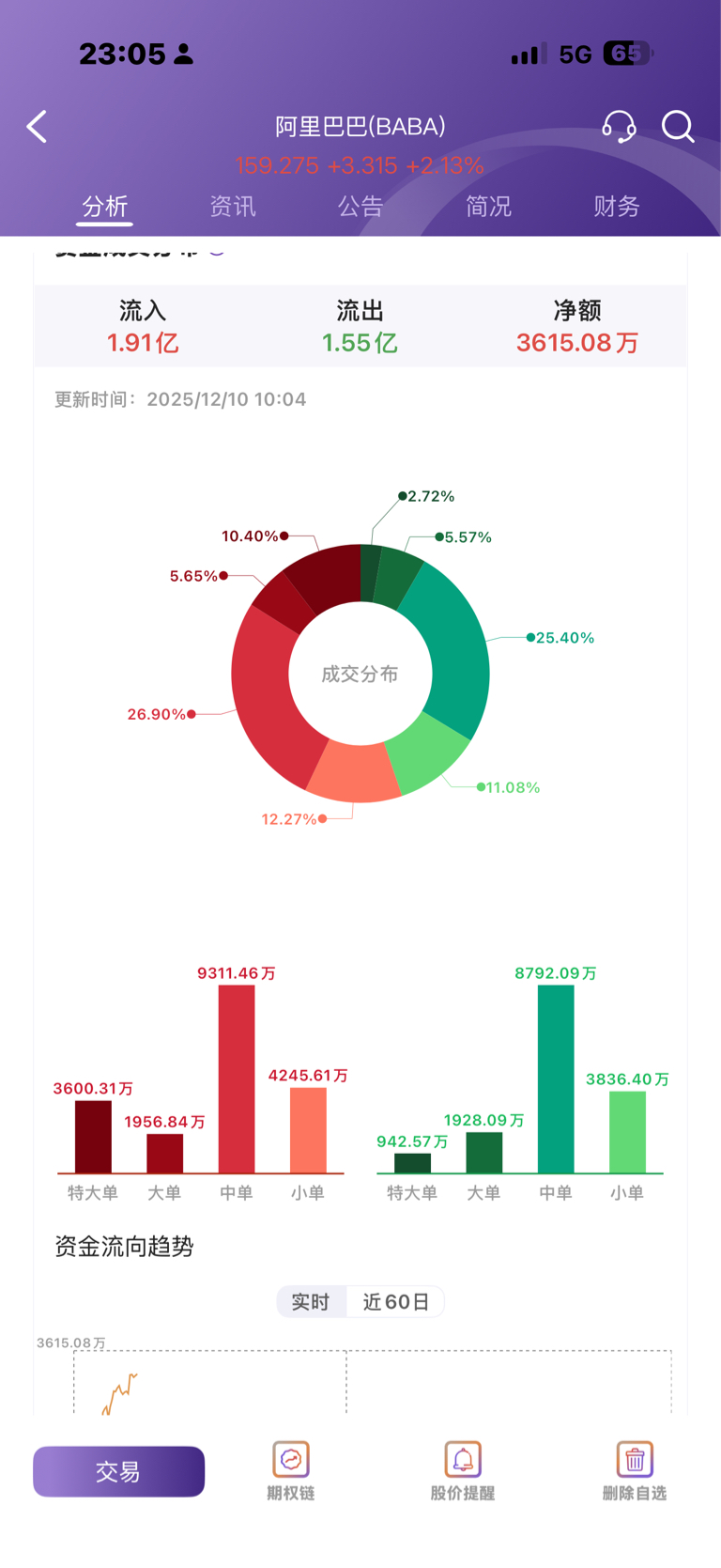 $阿里巴巴(NYSE|BABA)$ 这流动性,怎么上去怎么下来,