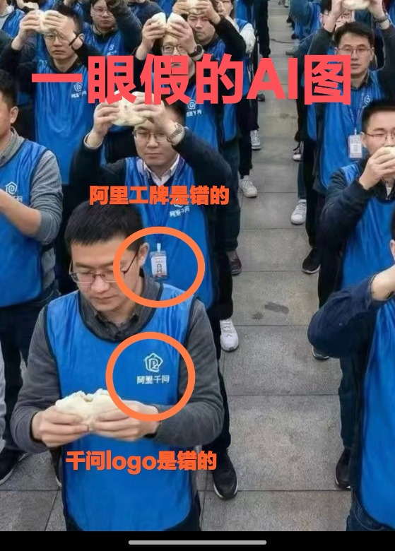 今日网络流传一张所谓“阿里千问全员会”图片,图中疑似阿里千问员工聚集在广场上手举豆包,广场一侧有“干死豆包”标语。对此,阿里相关人士向财联社记者辟谣,表示此图是“假的”。