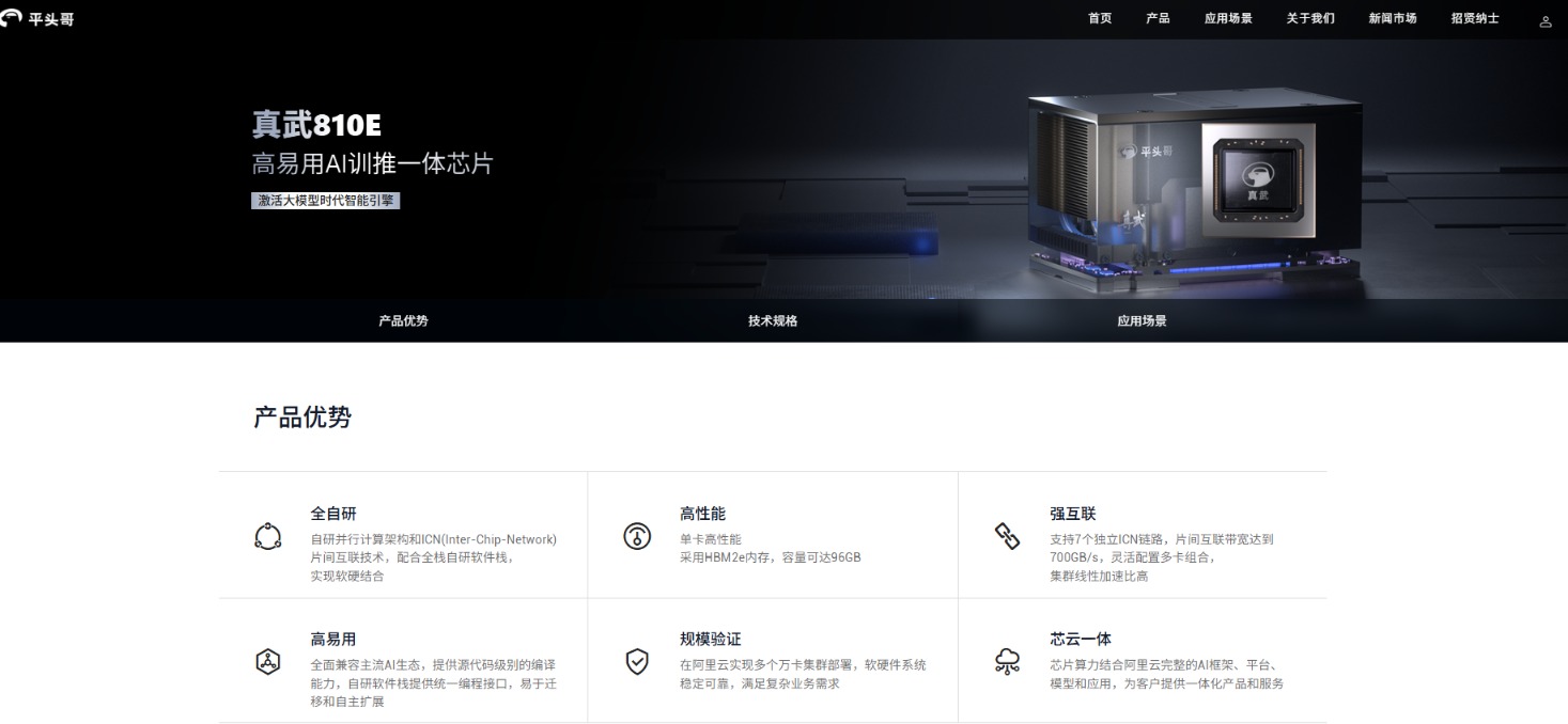 【大河财立方消息】1月29日,阿里平头哥官网上线高端AI芯片“真武810E” ,这款芯片已在阿里云实现多个万卡集群部署,并服务了国家电网、小鹏汽车等400多家客户。