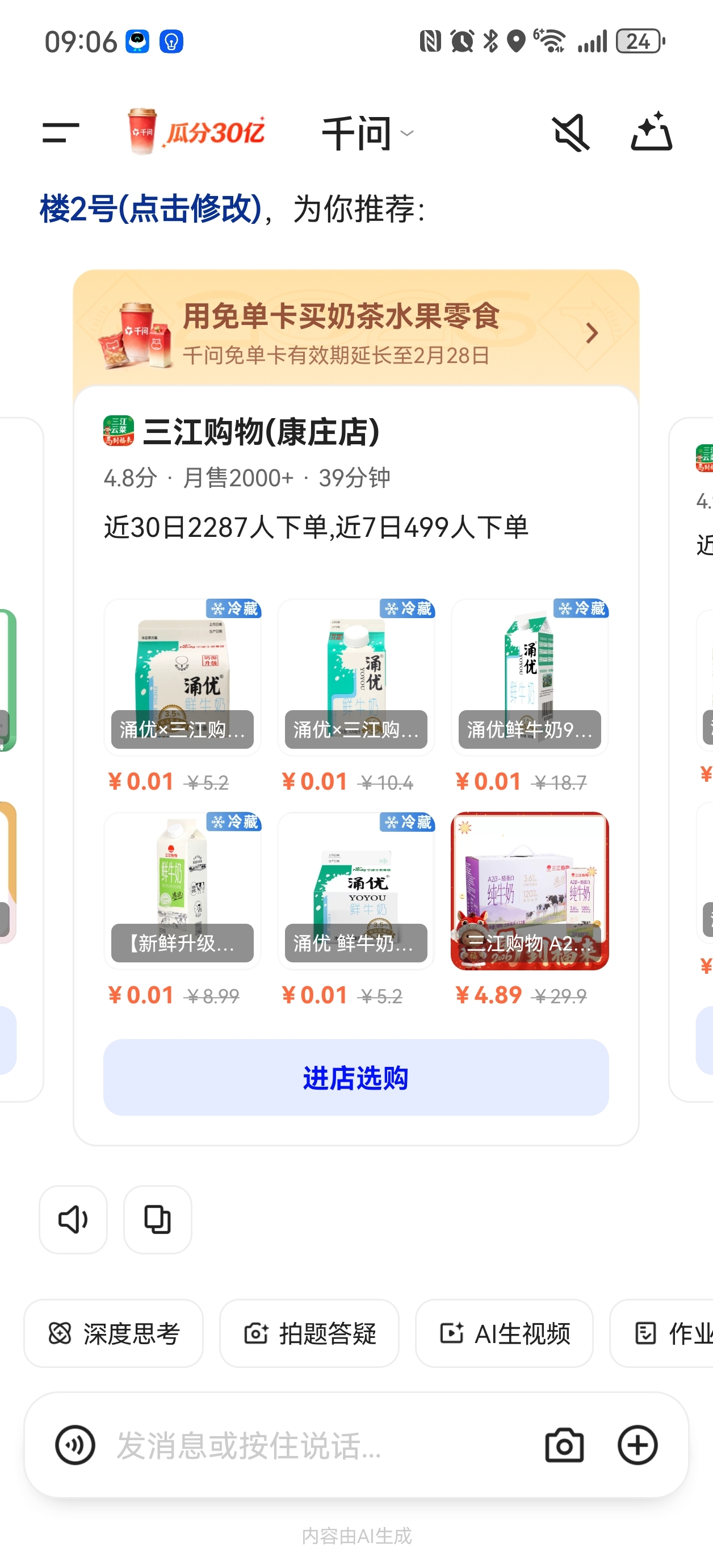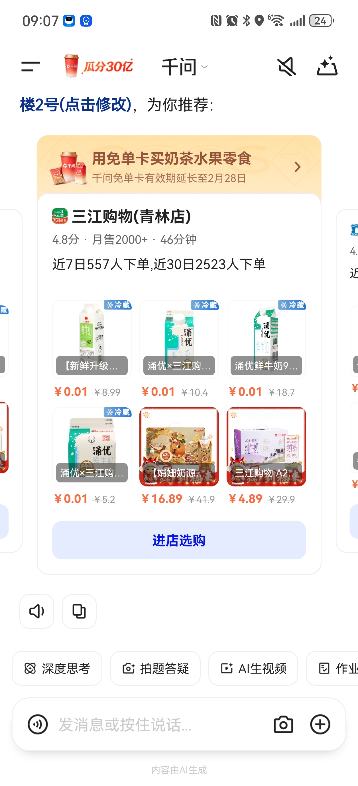 千问开启未来购物模式。只要你的收货地址在宁波等有三江购物实体店,千问就可以帮你直