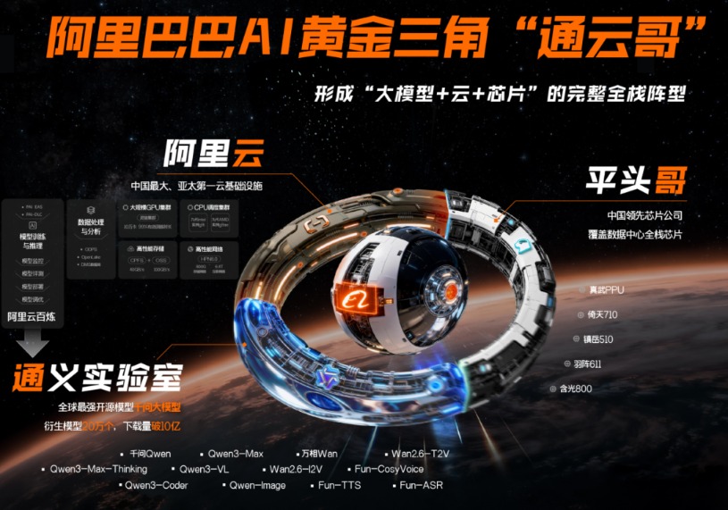 AI双线进击的背后,是阿里的厚积薄发。“通云哥”——通义实验室、阿里云、平头哥三大板块组成的黄金三角,让阿里真正掌握AI核心算力定义权。
