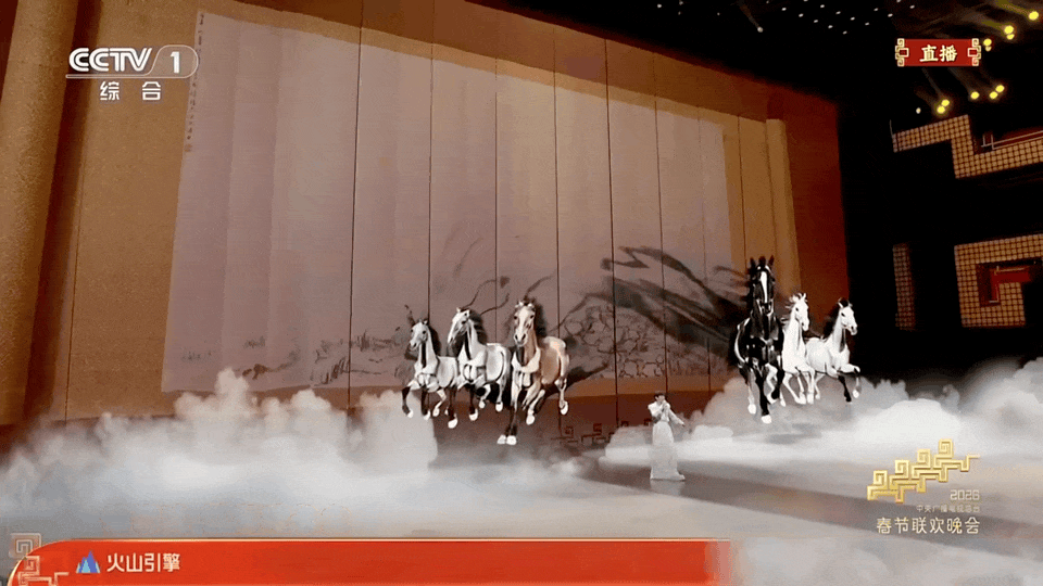 豆包的“造梦”,则体现在与春晚的深度绑定上。Seedance2.0为春晚《驭风歌》《贺花神》《快乐小马》等节目提供技术支持,火山引擎空间视频技术为《梦底》深度定制,就连登上春晚舞台的多款机器人,也搭载了字节跳动的语音大模型。