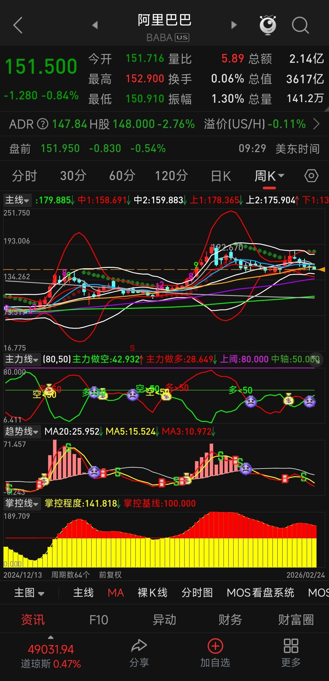 $阿里巴巴(NYSE|BABA)$ 周线级别大调整,没有几个月调整不完。