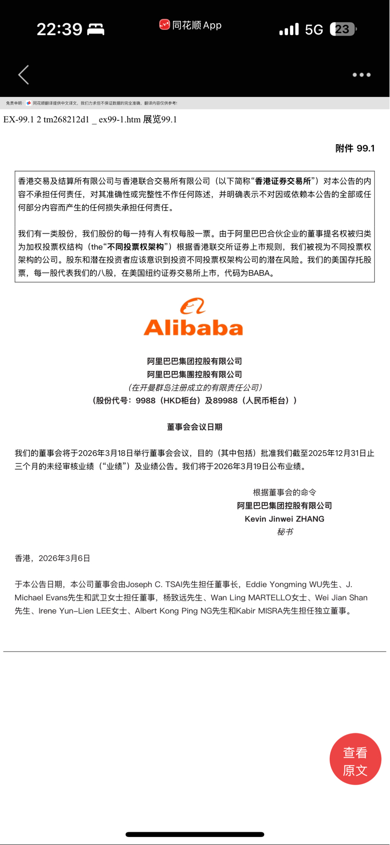 $阿里巴巴(NYSE|BABA)$ 这次应该是真的